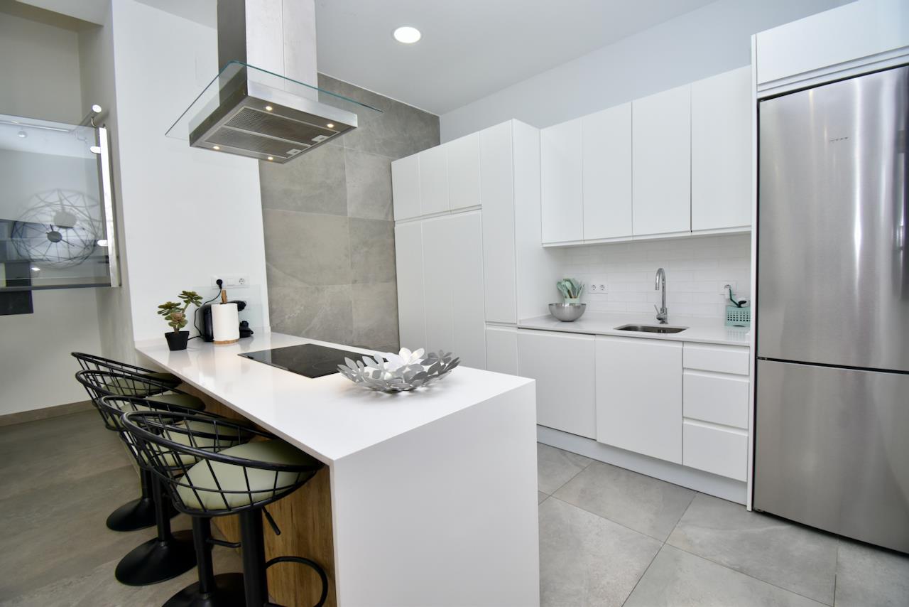 • offene Küche mit Elektroherd, Elektrobackofen, Mikrowelle, Geschirrspüler, Kühlschrank mit Gefrierfach, Kaffeemaschine, Toaster und Entsafter