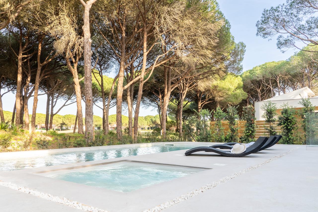 Moderne und luxuriöse Villa in Chiclana de la Frontera, Costa de la Luz, Spanien, mit privatem Pool für 6 Personen. Die Villa befindet sich in einem Wohngebiet in Strandnähe.