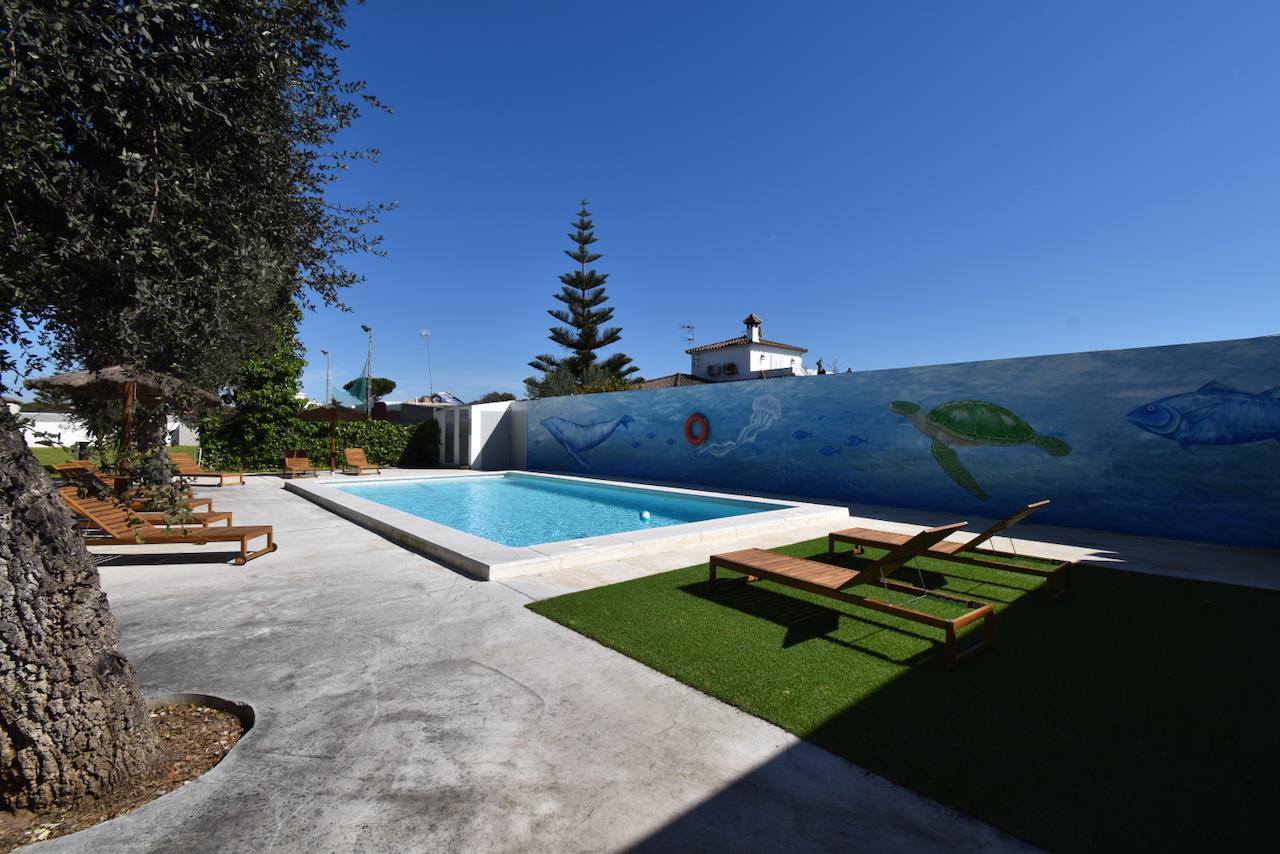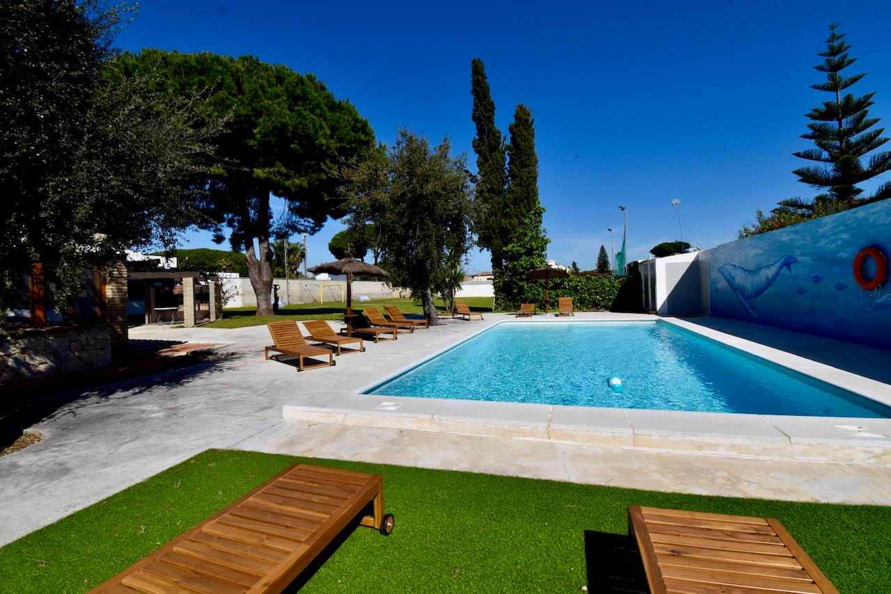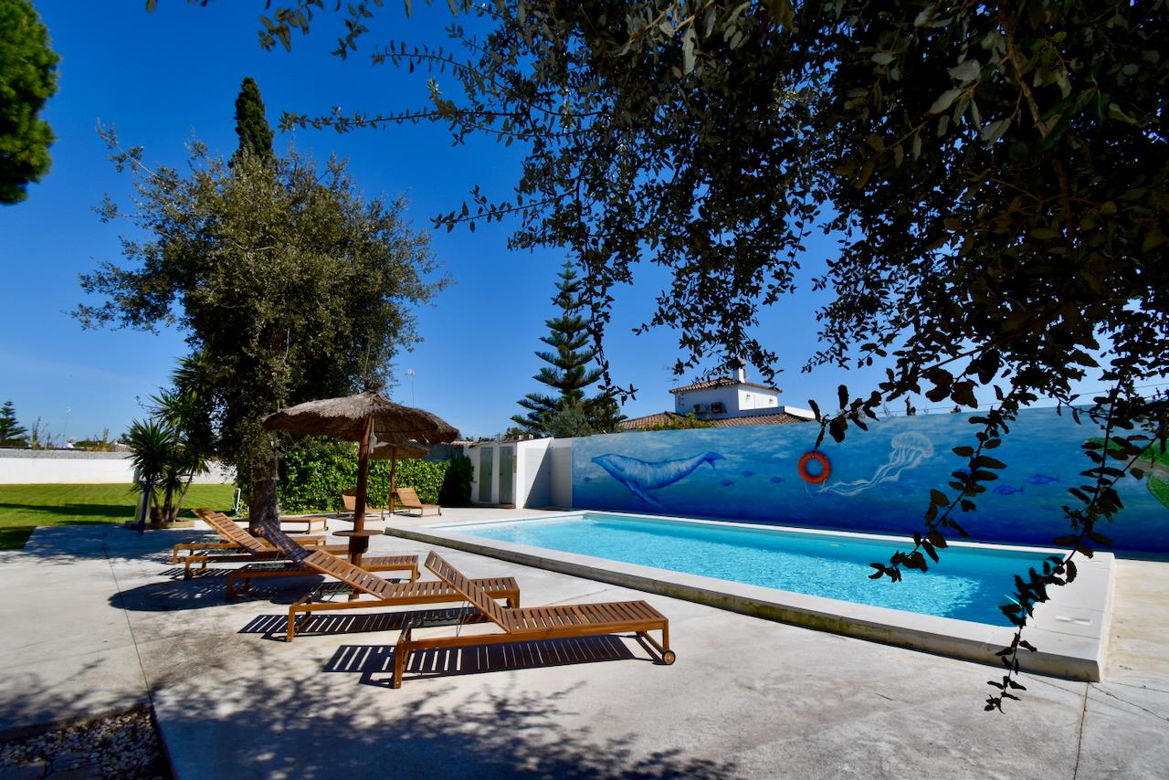 Geräumige und komfortable Villa mit Privatpool in Chiclana de la Frontera, Costa de la Luz, Spanien für 15 Personen. Das Haus befindet sich in einem ländlichen Wohngebiet in Strandnähe, 2 km vom Strand La Barrosa entfernt.