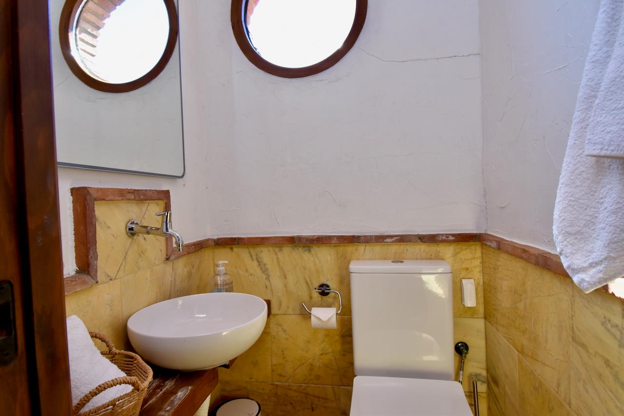 Schlafzimmer und Badezimmer der Hauptunterkunft