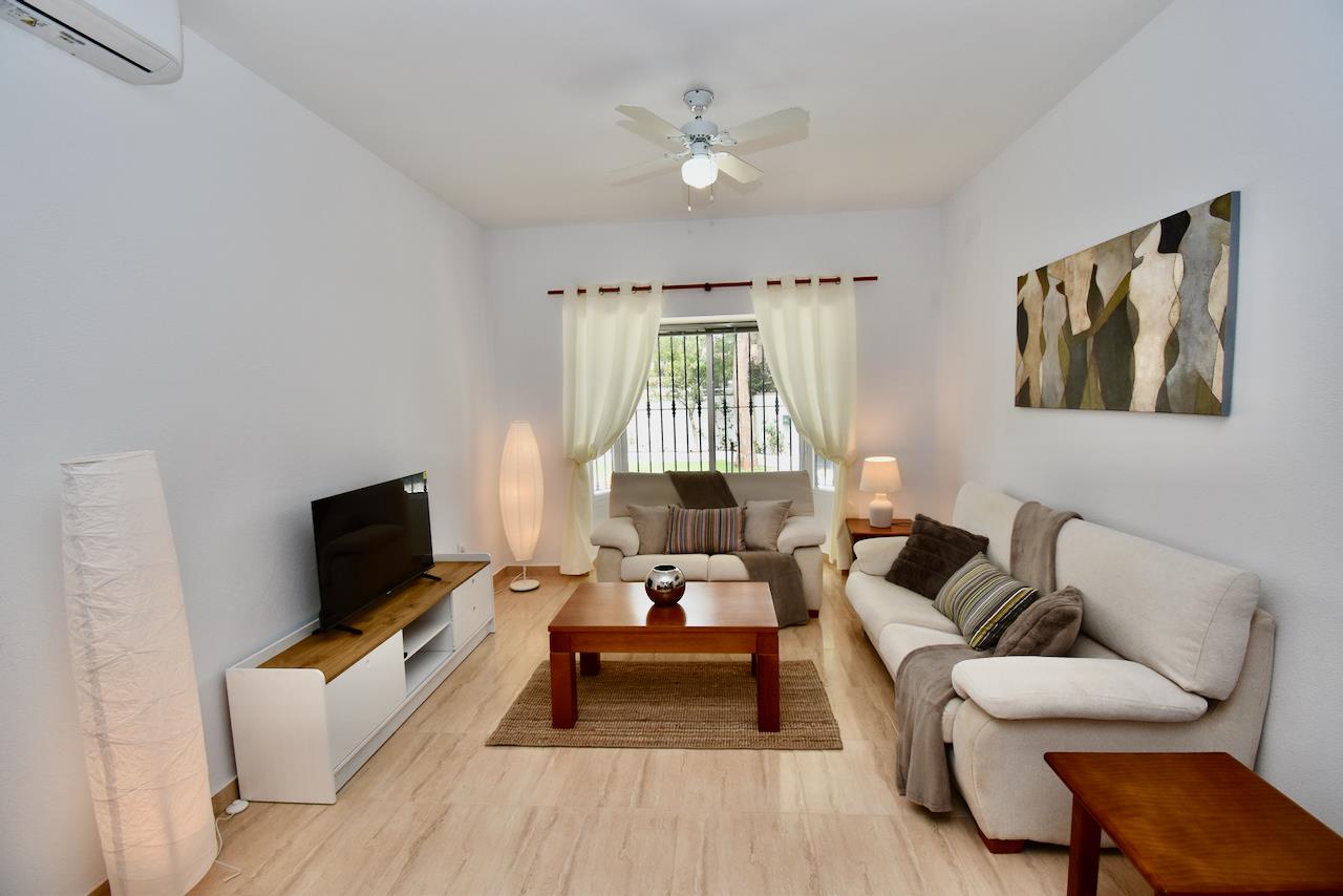 • Wohnzimmer mit Klimaanlage, Fernseher und Deckenventilator