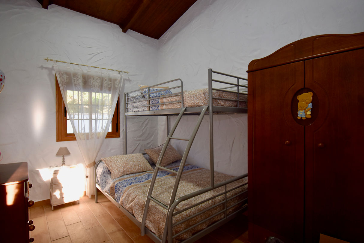 • Schlafzimmer mit Einzelbett und 2 Etagenbetten