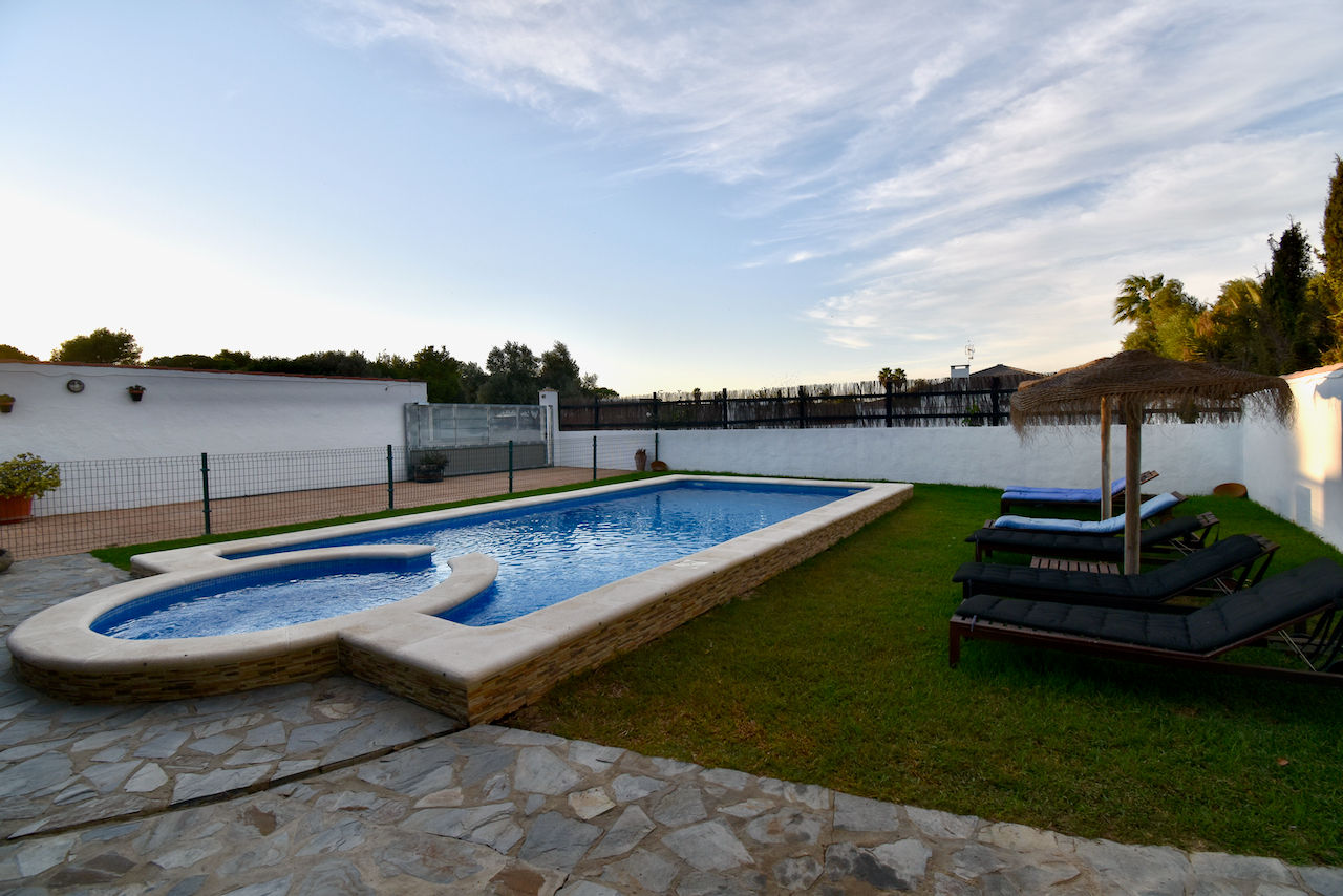 Villa mit privatem Pool in Chiclana de la Frontera, Costa de la Luz, Spanien für 11 Personen. Das Haus befindet sich in einer ländlichen Küsten-Umgebung.