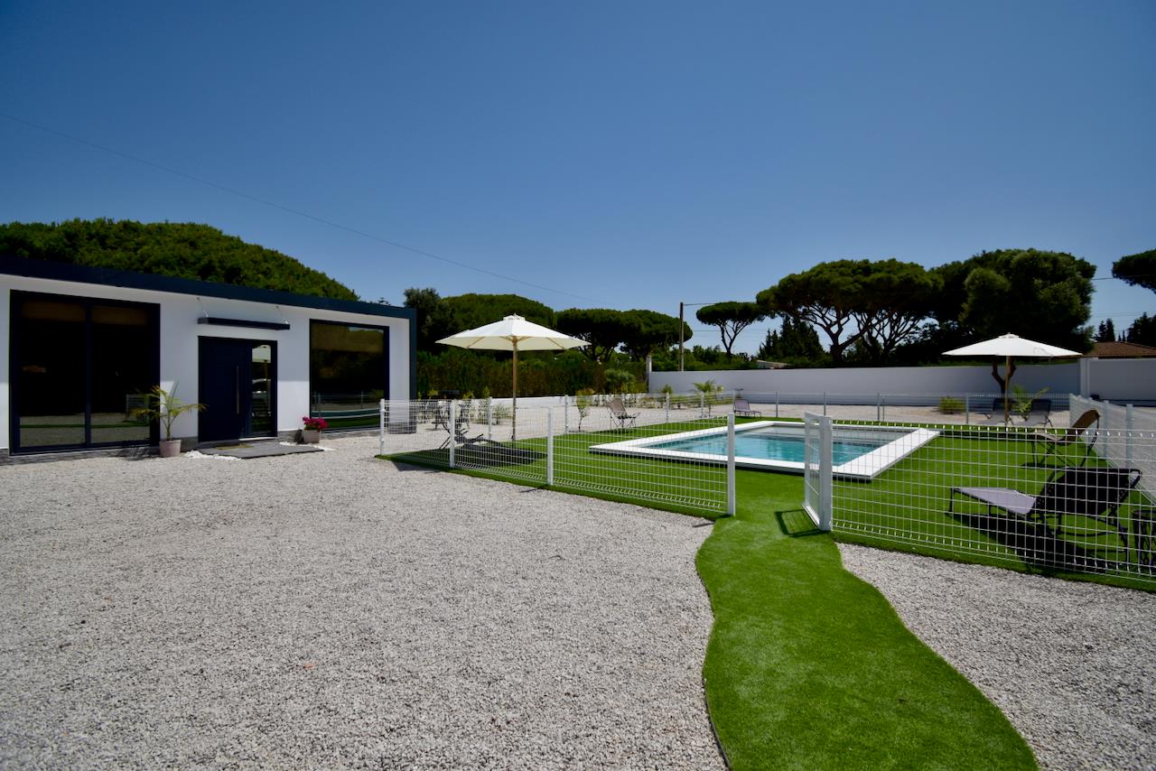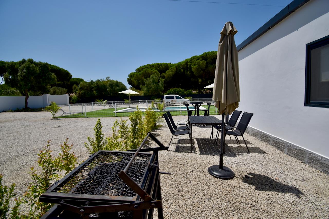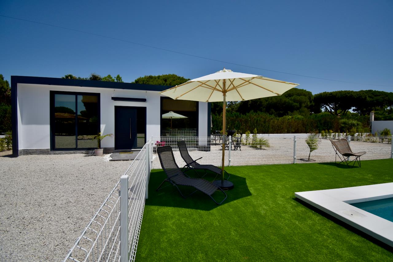 Schöne und fröhliche Villa in Chiclana de la Frontera, Costa de la Luz, Spanien, mit einem privaten Pool für 5 Personen. Das Haus liegt in einem ländlichen Strandgebiet.