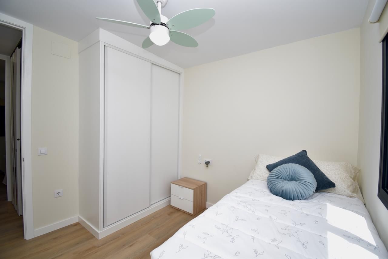 • Schlafzimmer mit Doppelbett (190 x 150 cm) und Ventilator