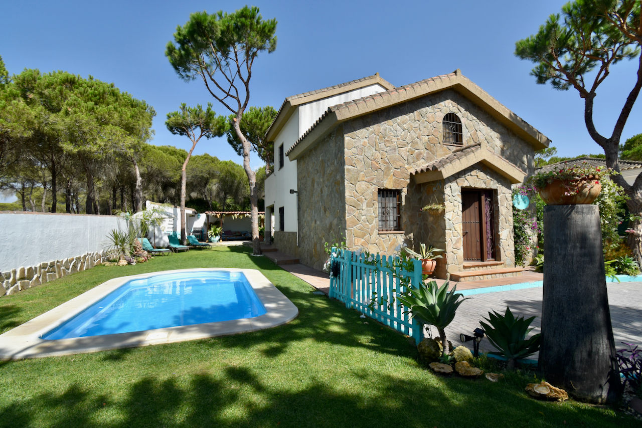 Schöne und gemütliche Villa mit privatem Pool in Chiclana de la Frontera, Costa de la Luz, Spanien für 7 Personen. Das Haus befindet sich in einer ländlichen Küsten-Umgebung.